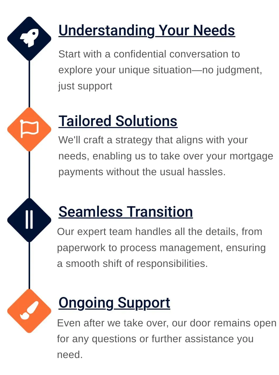 We'll craft a strategy that aligns with your needs, enabling us to take over your mortgage payments without the usual hassles.